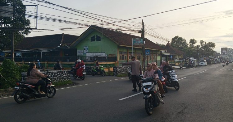 POLRES TASIK KOTA –Giat Pelayanan Masyarakat gatur lalin pagi Polsek Manonjaya Polres Tasikmalaya Kota dan memberikan himbauan kamtibmas kepada Masyarakat, Senin