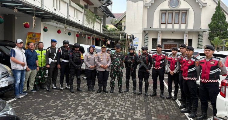 TASIKMALAYA — Guna memastikan perayaan Natal 2025 berlangsung aman, tertib, dan penuh kedamaian, Satuan Samapta Polres Tasikmalaya Kota bersama TNI serta Satuan Brimob Batalyon D Pelopor Polda Jawa Barat menggelar patroli dan pengamanan intensif di sejumlah gereja yang berada di wilayah hukum Polres Tasikmalaya Kota, Kamis 25 Fesember 2025 pagi.
