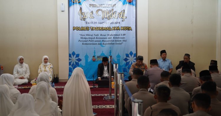 Peringatan Isra Mikraj ini dipimpin langsung oleh Wakil Kepala Polres Tasikmalaya Kota, Kompol Wahyu Maduransyah Putra, S.T., S.I.K., M.H.
