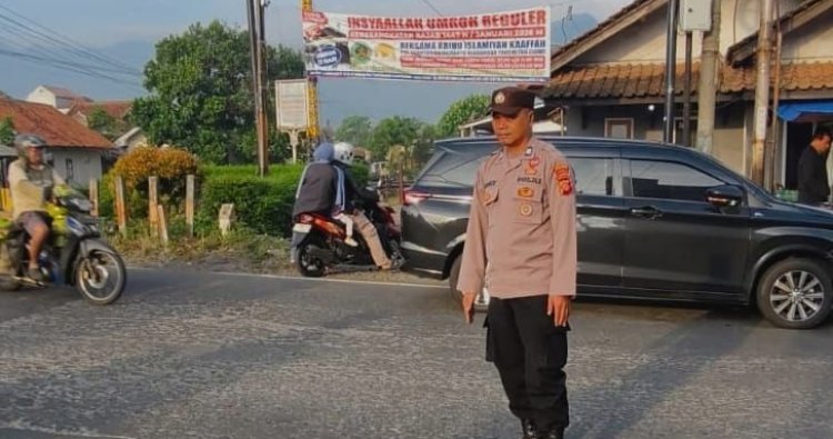 Personel Polsek Ciawi Polres Tasik Kota menggelar kegiatan strong point pagi dengan melakukan pengamanan dan pengaturan lalu lintas di sejumlah titik rawan kecelakaan lalu lintas, rawan kemacetan, pusat keramaian Jum'at (30/01/2026)